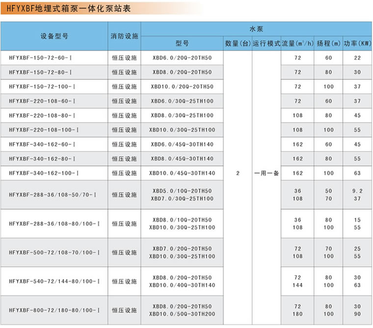 富亚公司生产的地埋式箱泵一体化消防泵站,是根据公安部标准GB 27898.2-2011《消防自动恒压给水设备》和国标02S101图集设计的新型消防专用固定灭火装置。设备主要由不锈钢消防水箱/热镀锌钢板水箱/SMC水箱,消防增压泵、稳压泵,气压罐,控制柜,传感器,仪表,管道附件等组成;是取代混凝土消防水池的理想产品,可节约投资30%以上。广泛适用于多层建筑、高层建筑和厂矿企业等有消防增压设计要求的消火栓系统及喷淋系统等各类消防给水系统。