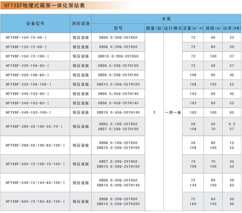 富亚公司生产的地埋式箱泵一体化消防泵站,是根据公安部标准GB 27898.2-2011《消防自动恒 压给水设备》和国标02S101图集设计的新型消防专用固定灭火装置。设备主要由不锈钢消防水箱/热镀锌钢板水箱/SMC水 箱,消防增压泵、稳压泵,气压罐,控制柜,传感器,仪表,管道附件等组成;是取代混凝土消防水池的理想产品,可 节约投资30%以上。广泛适用于多层建筑、高层建筑和厂矿企业等有消防增压设计要求的消火栓系统及喷淋系统等各类消 防给水系统。